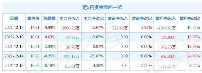 资金流向数据方面,当日主力资金净流入2906.53万元,游资资金净流入727.4万元,散户资金净流出1914.41万元。近5日资金流向一览见下表: